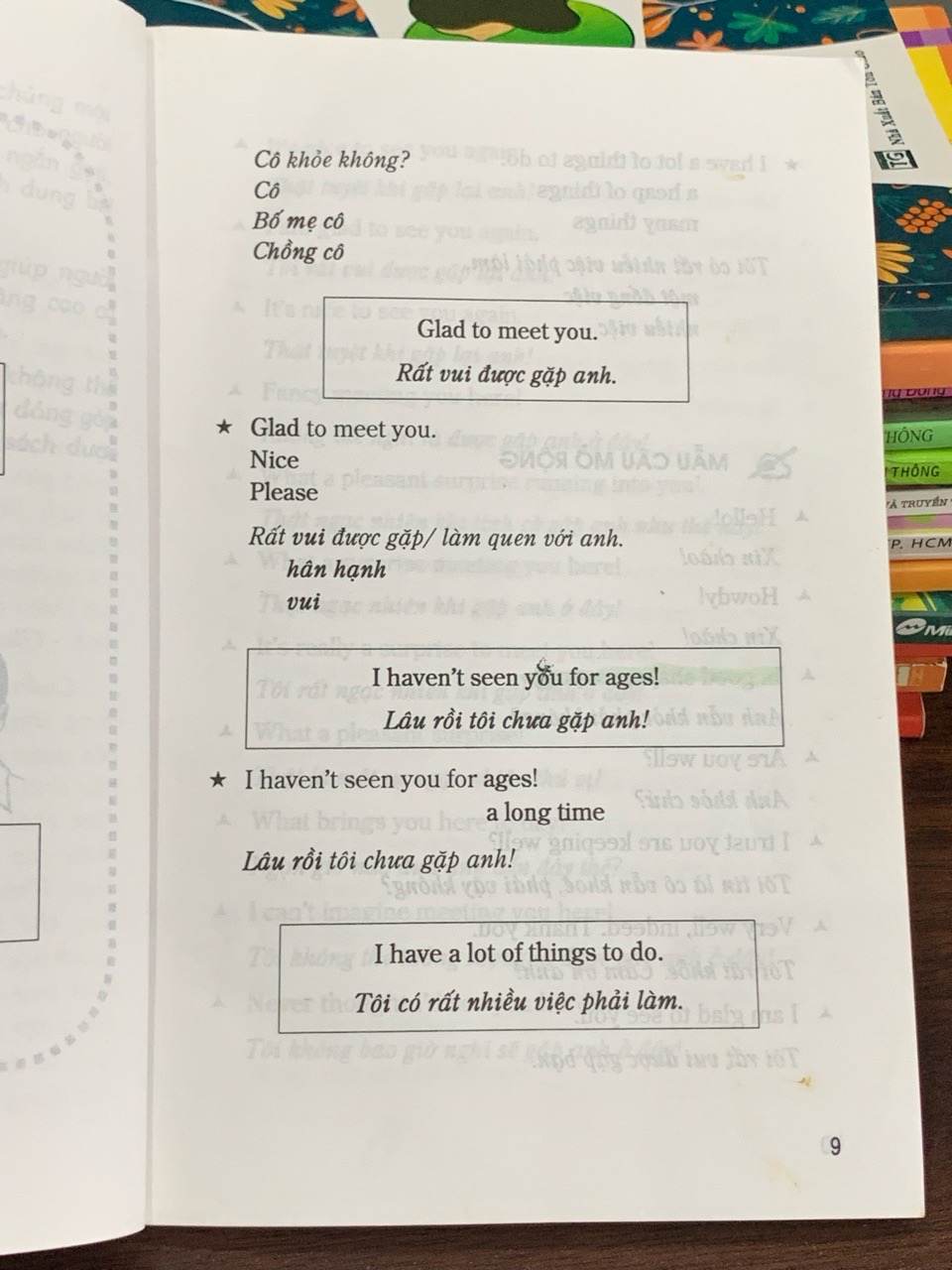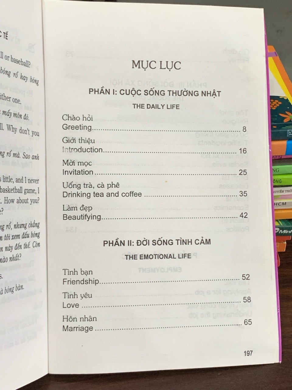 Cuốn sách tổng hợp một số lượng lớn các mẫu câu giao tiếp tiếng Anh thông dụng, được phân loại theo các chủ đề và tình huống thực tế như chào hỏi, mua sắm, hỏi đường, du lịch… Đây là tài liệu tham khảo hữu ích giúp người học nhanh chóng mở rộng vốn câu và cải thiện khả năng phản xạ trong giao tiếp hàng ngày.