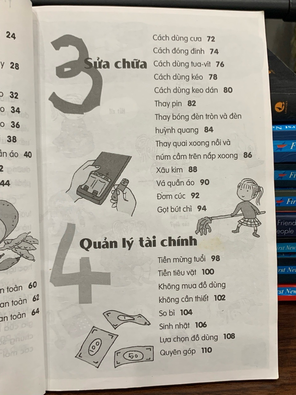 Vậy kỹ năng sống thực tế bao gồm những gì? Đó không phải là những khái niệm trừu tượng, xa vời mà là tập hợp những kỹ năng cụ thể, gần gũi mà trẻ có thể áp dụng ngay lập tức. Cuốn sách hệ thống hóa 49 kỹ năng thiết yếu, được chia thành nhiều nhóm chủ đề đa dạng, bao trùm mọi khía cạnh trong cuộc sống của trẻ. Từ những kỹ năng tự chăm sóc bản thân cơ bản như tự mặc quần áo, vệ sinh cá nhân, chuẩn bị một bữa ăn đơn giản, đến các kỹ năng quản lý thời gian, sắp xếp đồ đạc gọn gàng để hình thành tính ngăn nắp và kỷ luật. Sách cũng chú trọng vào việc phát triển kỹ năng xã hội, dạy trẻ cách giao tiếp lịch sự, biết lắng nghe, chia sẻ, làm việc nhóm và giải quyết xung đột một cách hòa bình. Đặc biệt, các kỹ năng đảm bảo an toàn cho bản thân như cách ứng xử khi gặp người lạ, cách xử lý khi bị lạc, hay các quy tắc an toàn giao thông cơ bản cũng được trình bày một cách cặn kẽ, dễ hiểu, giúp trẻ tự bảo vệ mình trong những tình huống bất ngờ.
