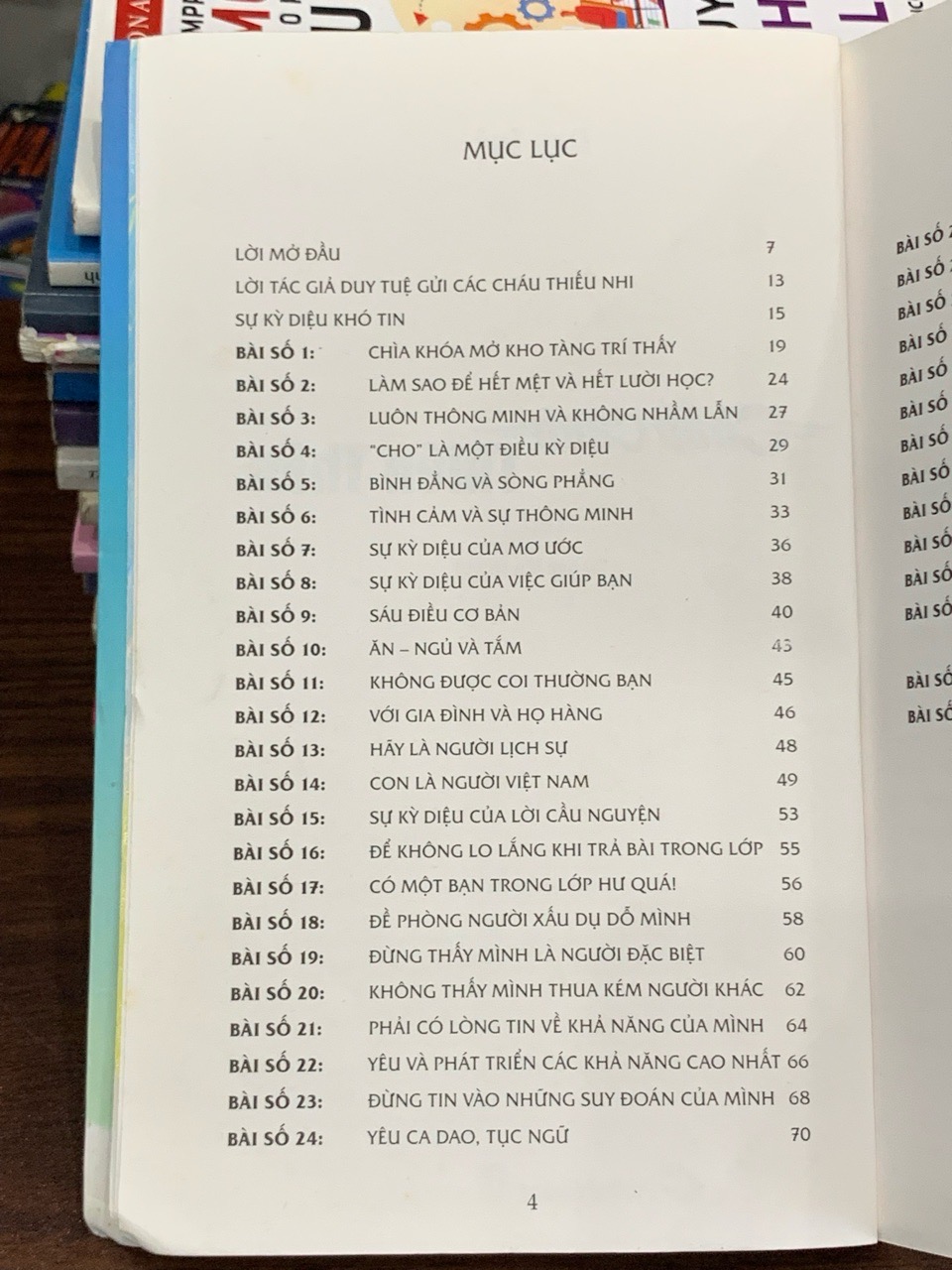 Cuốn sách là những chia sẻ giản dị, gần gũi nhằm giáo dục và nuôi dưỡng tâm hồn cho trẻ em trong lứa tuổi từ 5-15. Tác phẩm hướng các em đến những giá trị sống cao đẹp, dạy các kiến thức ứng xử cơ bản và giúp các em vượt qua nỗi sợ hãi, hình thành những ước mơ và sống một cuộc sống ý nghĩa.