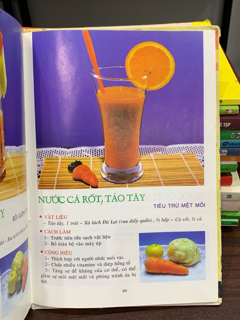 Cuốn sách là cẩm nang hướng dẫn cách làm các loại nước ép, sinh tố từ rau củ và trái cây tươi. Sách cung cấp nhiều công thức kết hợp sáng tạo, không chỉ thơm ngon mà còn có tác dụng thanh lọc cơ thể, bổ sung vitamin, tăng cường hệ miễn dịch và cải thiện làn da. Đây là bí quyết đơn giản để có một lối sống lành mạnh hơn.