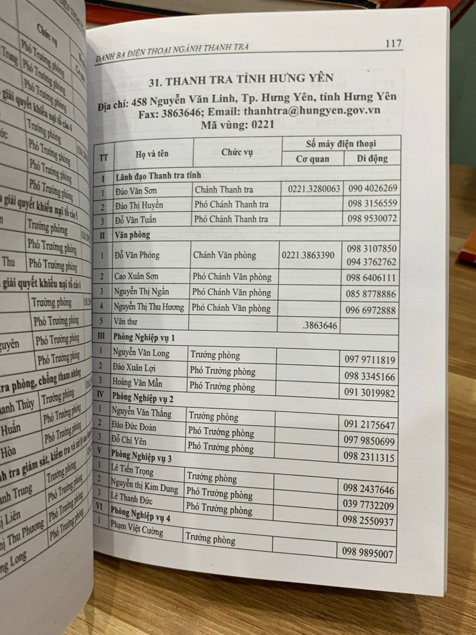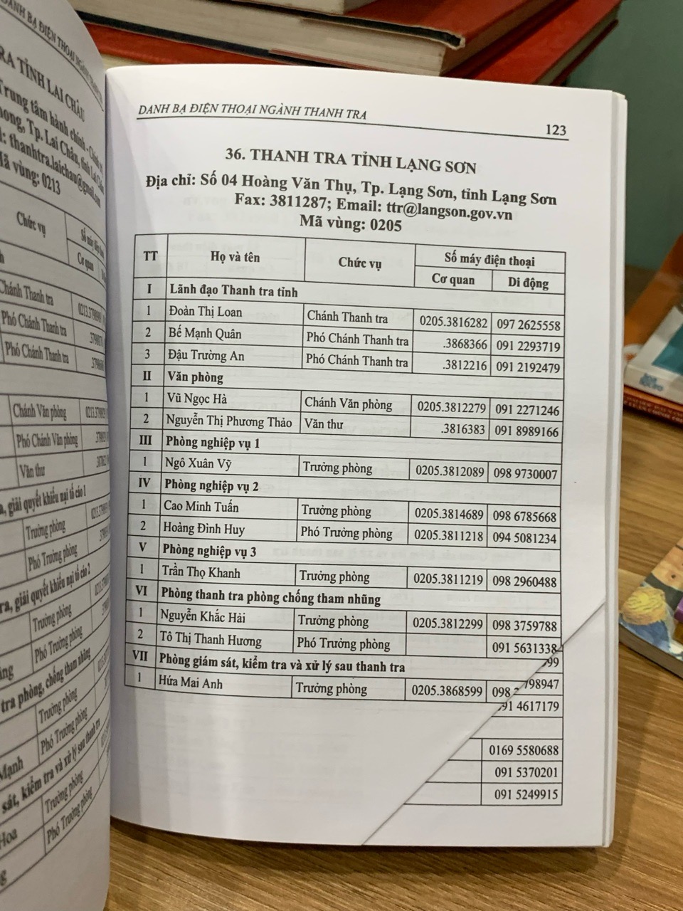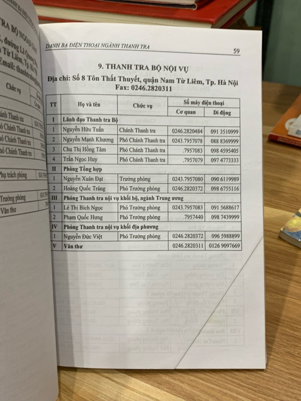 Về mặt nội dung, có thể hình dung cuốn danh bạ được cấu trúc một cách khoa học và logic. Thông tin thường được phân chia theo cấp hành chính và lĩnh vực. Phần đầu có thể là thông tin liên lạc của các lãnh đạo, các cục, vụ, đơn vị trực thuộc Thanh tra Chính phủ. Tiếp theo là phần dành cho thanh tra các bộ, cơ quan ngang bộ, cơ quan thuộc Chính phủ. Phần lớn nhất và quan trọng nhất có lẽ là thông tin chi tiết của thanh tra các tỉnh, thành phố, được sắp xếp theo thứ tự bảng chữ cái để dễ dàng tra cứu. Trong mỗi đơn vị, thông tin được trình bày rõ ràng, bao gồm tên cơ quan, địa chỉ, số điện thoại cố định, số fax, địa chỉ email công vụ, và danh sách các cán bộ lãnh đạo, trưởng các phòng ban kèm theo số điện thoại di động (nếu có). Sự sắp xếp này không chỉ giúp tra cứu nhanh mà còn phác họa một bức tranh tổng thể về hệ thống tổ chức của ngành thanh tra Việt Nam.