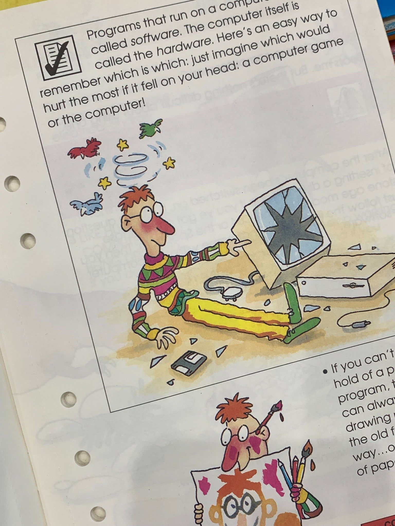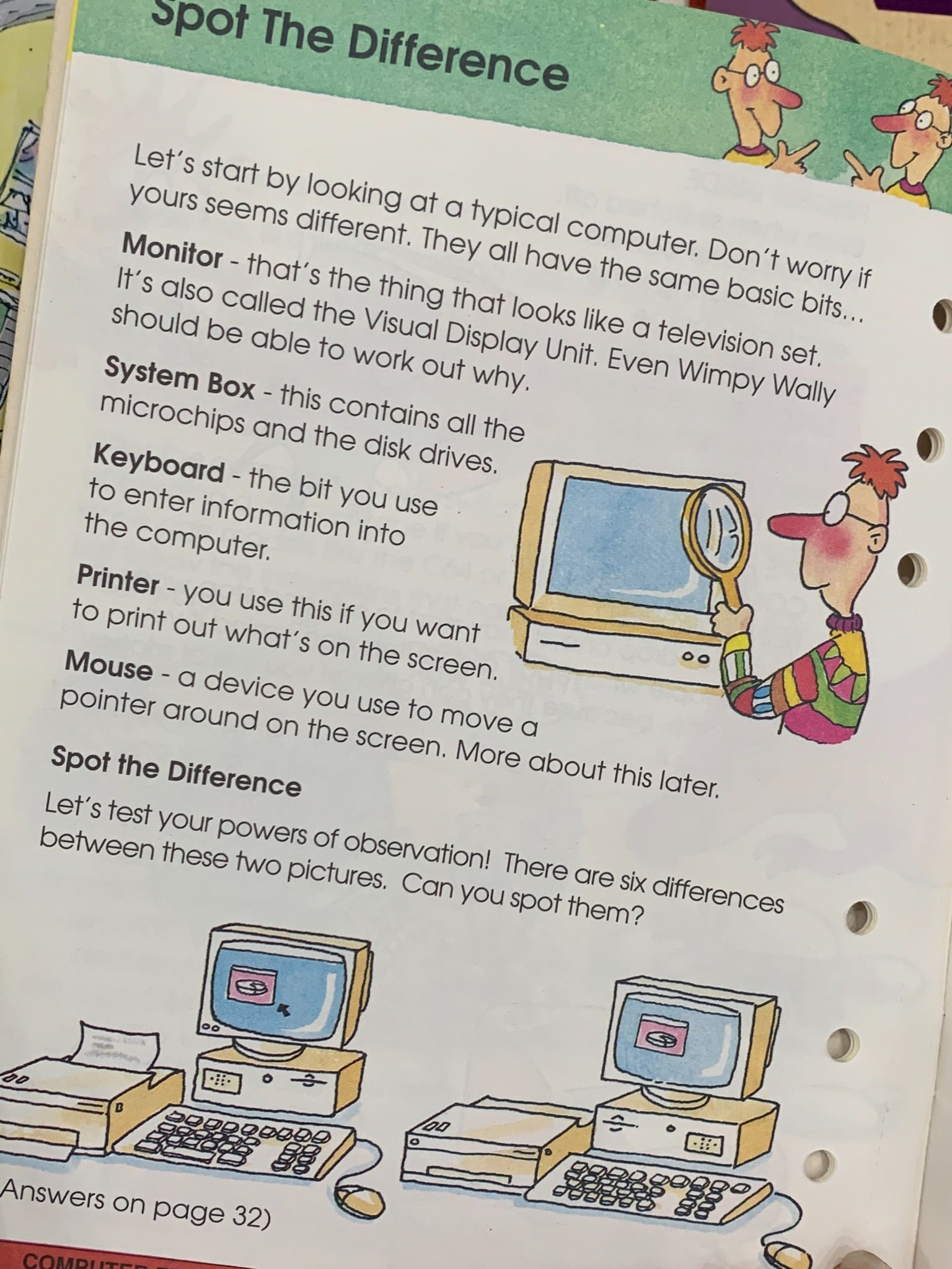 A retro activity book from the 90s designed to introduce children to the world of computers. This binder-style book is filled with fun facts, puzzles, games, and simple tutorials about basic computer concepts from that era, such as floppy disks, early Windows operating systems, and pixel art. It’s a nostalgic look back at a time when personal computers were just becoming mainstream for families. The interactive and colorful format was designed to make learning about technology exciting for kids.