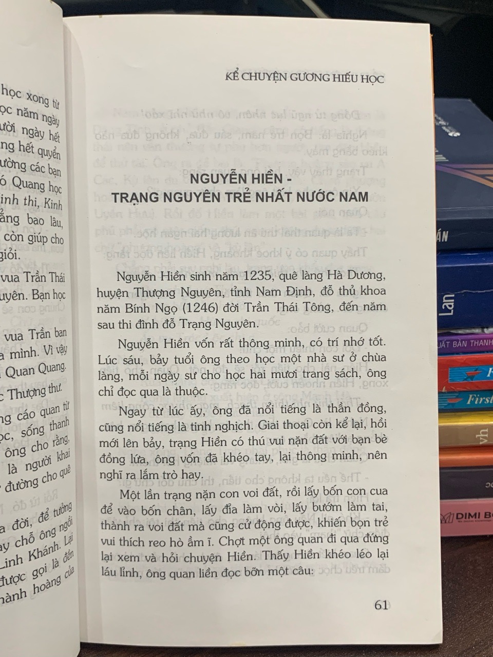 Cuốn sách là một tuyển tập những câu chuyện kể về các tấm gương hiếu học nổi tiếng trong lịch sử Việt Nam và thế giới, từ Mạc Đĩnh Chi, Lương Thế Vinh cho đến Thomas Edison. Mỗi câu chuyện là một bài học sống động về tinh thần vượt khó, lòng say mê học hỏi và ý chí kiên trì theo đuổi tri thức. Với lời kể súc tích, gần gũi và hình ảnh minh họa sinh động, tác phẩm là một công cụ giáo dục nhân cách hiệu quả, giúp gieo vào lòng các em nhỏ niềm yêu thích học tập và khát vọng vươn lên trong cuộc sống.