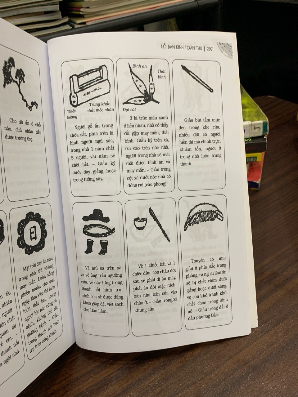 Nội dung của Lỗ Ban Kinh Toàn Thư được chia thành hai phần rõ rệt, thường được gọi là phần “dương” và phần “âm”, phản ánh triết lý Âm-Dương sâu sắc. Phần “dương” tập trung vào các kiến thức xây dựng mang lại cát tường, may mắn và thịnh vượng. Đó là những quy tắc vàng trong việc chọn đất, định hướng nhà, xác định kích thước cửa, cổng, bàn thờ và các vật dụng quan trọng khác theo thước Lỗ Ban. Phần này hướng dẫn chi tiết cách thức khởi công, cất nóc, đổ trần… vào những thời điểm hoàng đạo để thu hút vượng khí, đảm bảo công trình bền vững và mang lại tài lộc, sức khỏe cho gia chủ. Những kỹ thuật này không chỉ dựa trên kinh nghiệm thực tiễn mà còn kết hợp chặt chẽ với các học thuyết về phong thủy, Bát quái, Ngũ hành, giúp tạo ra một không gian sống hài hòa giữa con người và thiên nhiên, giữa vật chất và năng lượng.