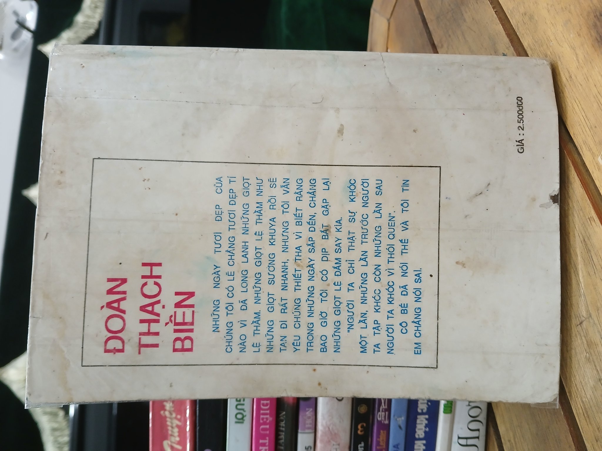Tập truyện ngắn của nhà văn Đoàn Thạch Biền, nổi tiếng với văn phong nhẹ nhàng, lãng mạn và đậm chất thơ. Tác phẩm là những câu chuyện về tình yêu tuổi học trò trong sáng, những kỷ niệm về “những ngày tươi đẹp” đã qua, phảng phất nỗi buồn man mác.