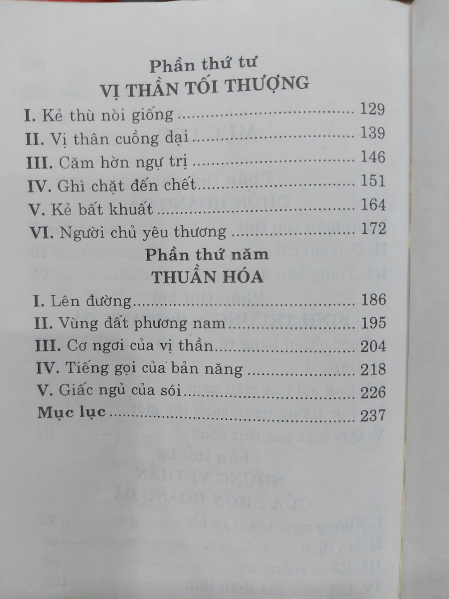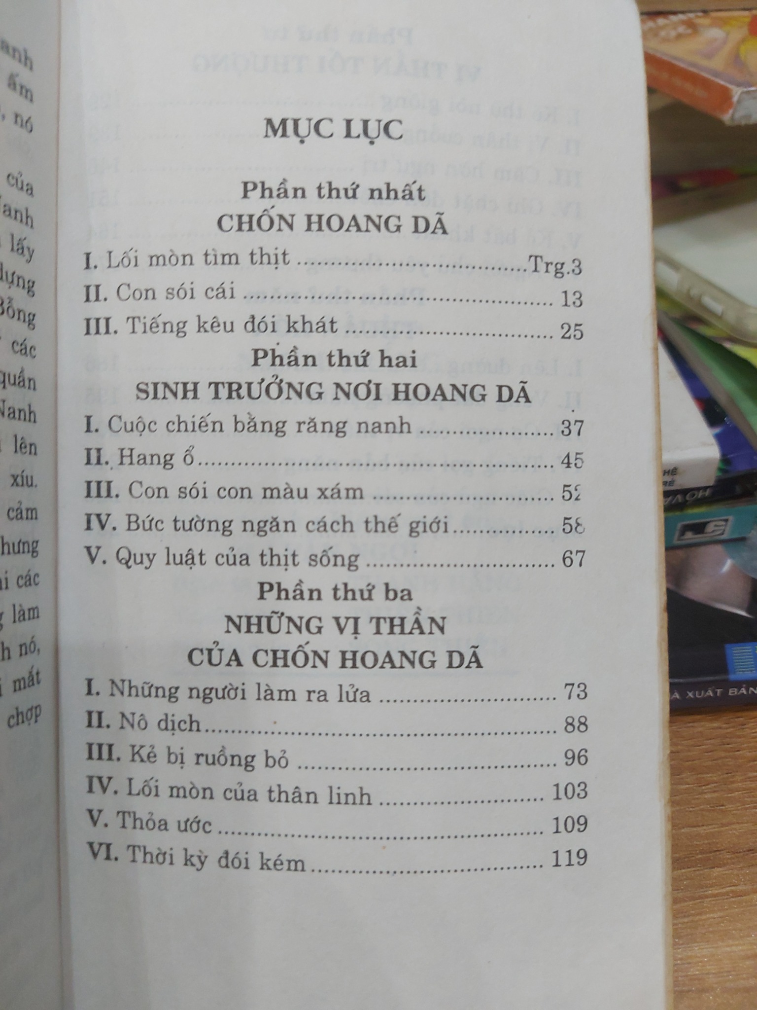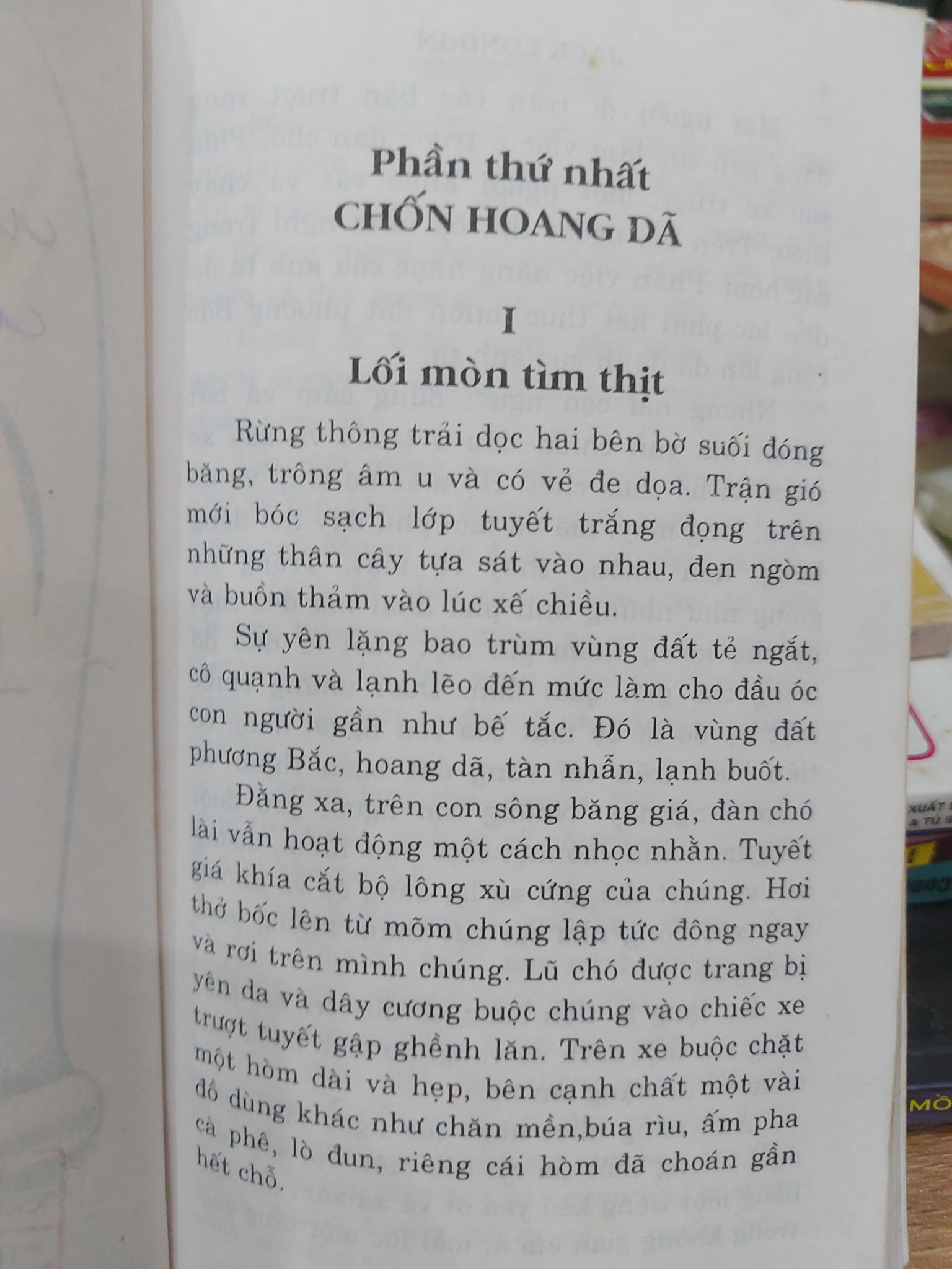 Cuộc đời của Nanh Trắng bắt đầu trong sự khắc nghiệt tột cùng của thiên nhiên hoang dã, nơi luật lệ duy nhất là “ăn hoặc bị ăn”. Nó học được những bài học đầu đời về sự tàn bạo, sự cảnh giác và sức mạnh. Khi tiếp xúc với con người lần đầu tiên qua người chủ da đỏ Grey Beaver, Nanh Trắng học được về sự phục tùng và kỷ luật, nhưng cũng phải chịu đựng sự xa lánh từ bầy chó làng. Cuộc đời nó rẽ sang một trang đen tối hơn khi rơi vào tay Beauty Smith, một kẻ độc ác đã biến nó thành một cỗ máy chiến đấu tàn bạo, khơi dậy tất cả những gì hung hãn và hoang dại nhất trong bản năng của nó. Giai đoạn này khắc họa một cách chân thực mặt tối của con người và sự ảnh hưởng tiêu cực mà họ có thể gây ra cho một sinh vật khác.