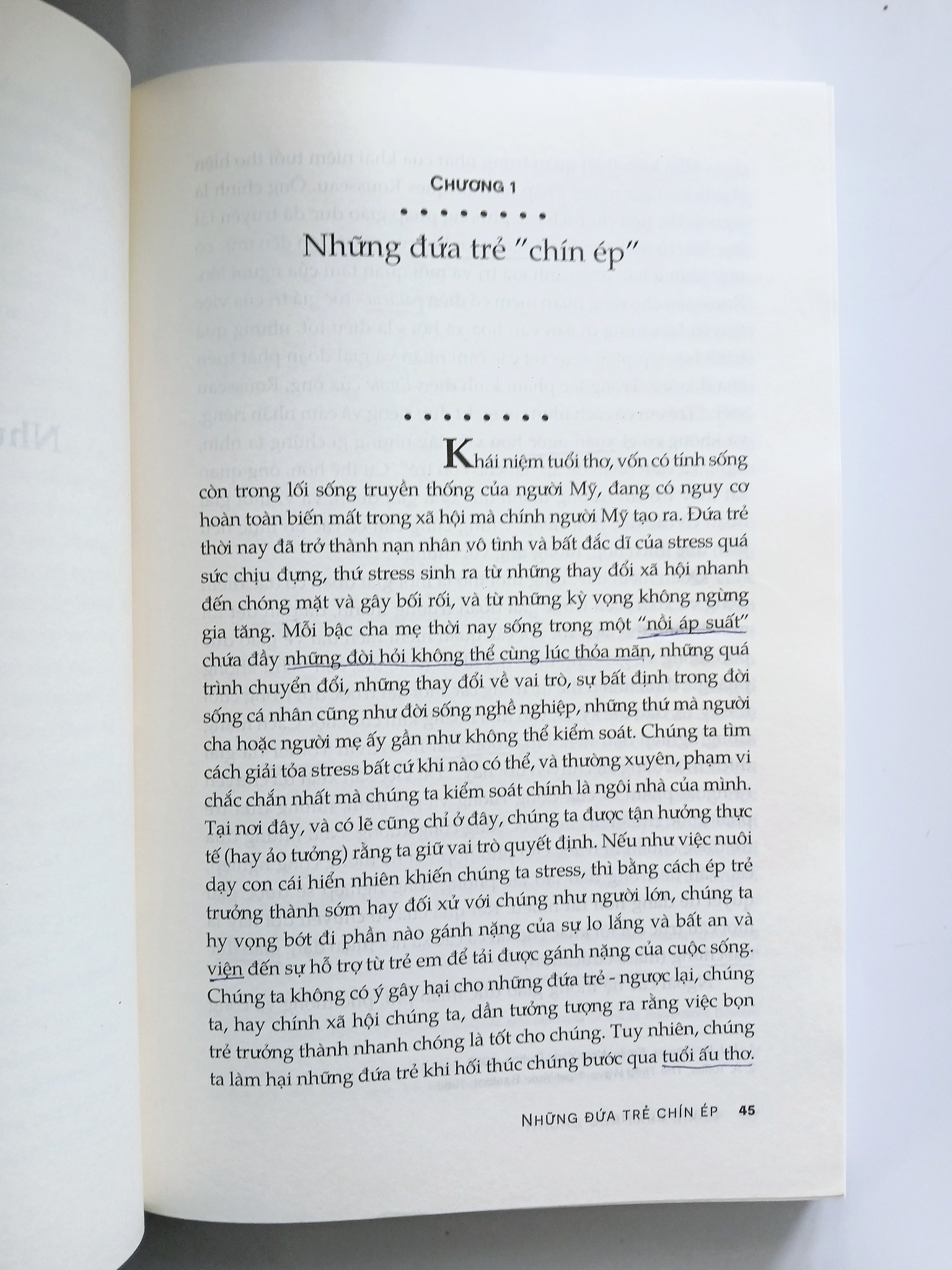 Tác giả vạch rõ những nguồn gốc đa dạng của áp lực này. Đó là áp lực từ chính các bậc phụ huynh, những người luôn mong muốn con mình phải thành công sớm, phải giỏi giang hơn bạn bè đồng trang lứa. Đó là áp lực từ hệ thống giáo dục ngày càng cạnh tranh, chú trọng vào điểm số và thành tích học thuật từ khi còn rất nhỏ. Bên cạnh đó, phương tiện truyền thông và văn hóa tiêu dùng cũng góp phần không nhỏ khi liên tục quảng bá những hình ảnh về những đứa trẻ “thần đồng”, ăn mặc và hành xử như người lớn, tạo ra một chuẩn mực sai lệch về sự phát triển lành mạnh.