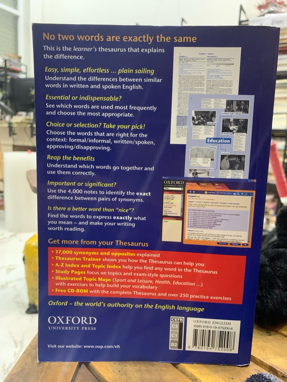 Oxford Learner’s Thesaurus: A Dictionary of Synonyms la cuon tu dien danh tieng tu Oxford University Press. Hon ca mot cuon tu dien, day la cong cu mo rong von tu vung tieng Anh.