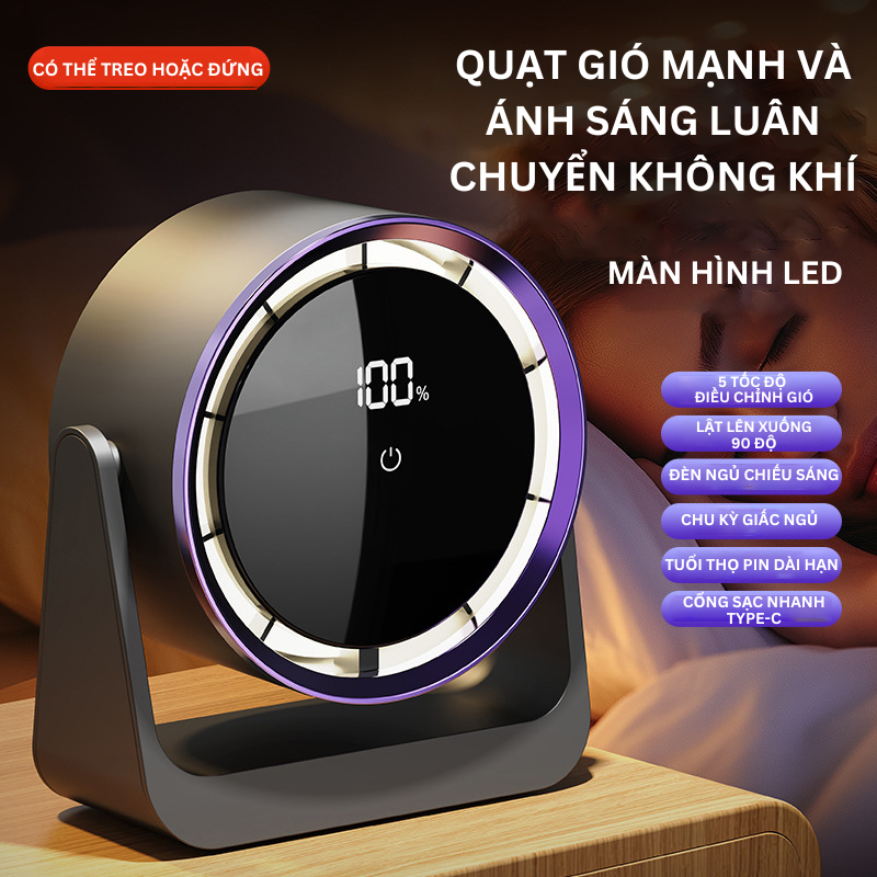 Quạt Để Bàn Không Dây Treo Tường 🌬️ – 5 Mức Điều Chỉnh Tốc Độ Gió, Dung Lượng Lớn, Xoay 90 Độ 🌀