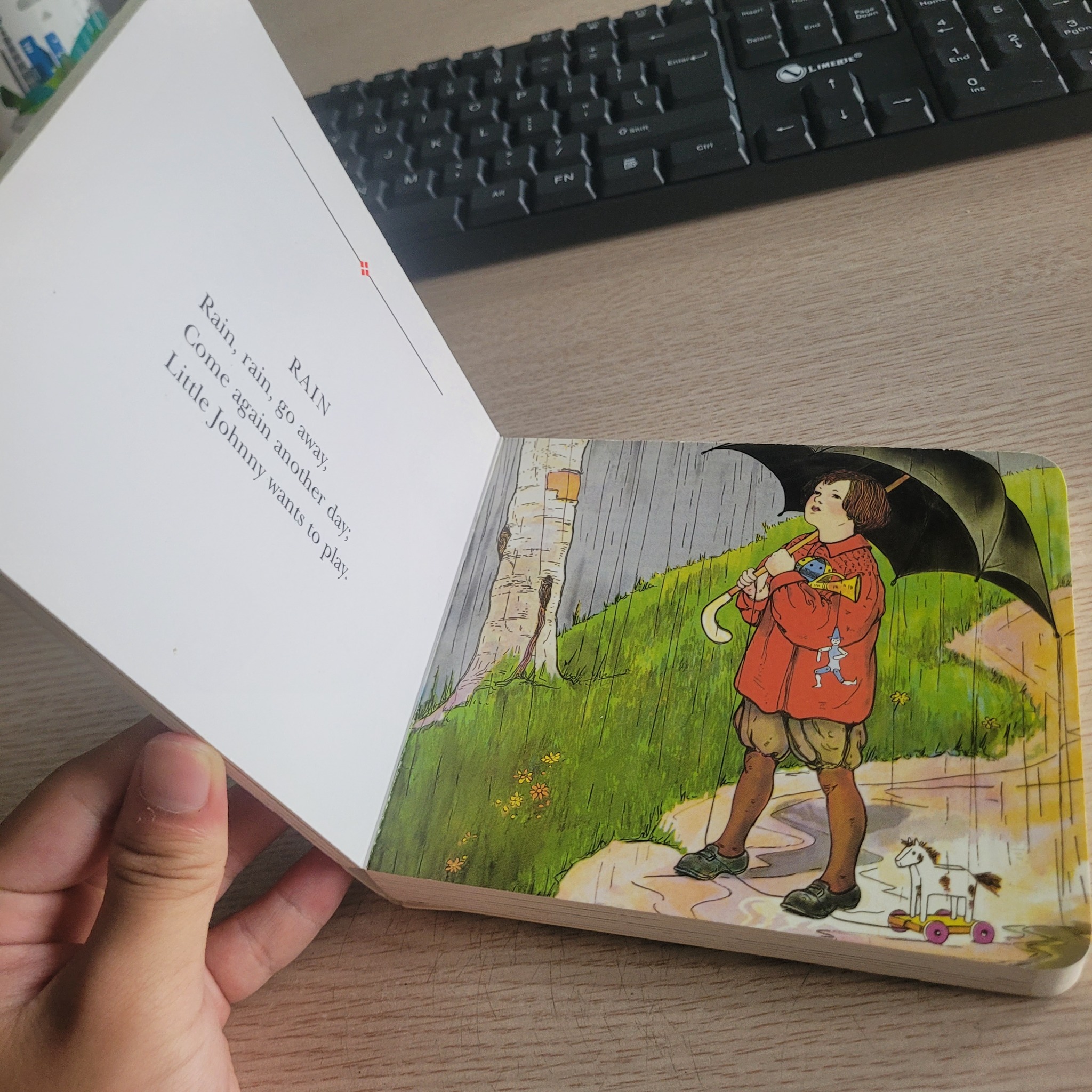 Bên trong cuốn sách là một thế giới đầy màu sắc với những nhân vật đã trở nên bất hủ trong văn hóa đại chúng, chẳng hạn như Humpty Dumpty ngồi trên tường, Jack và Jill lên đồi lấy nước, hay Little Bo-Peep lạc mất cừu. Mỗi bài thơ là một câu chuyện nhỏ, dễ nhớ, dễ thuộc, giúp trẻ làm quen với các cấu trúc câu đơn giản và từ vựng cơ bản. Đặc biệt, phần minh họa của Blanche Fisher Wright mang một vẻ đẹp cổ điển, duyên dáng và vượt thời gian. Những nét vẽ mềm mại, màu sắc tươi sáng nhưng không quá chói gắt của bà đã góp phần tạo nên linh hồn cho cuốn sách, giúp các em nhỏ hình dung một cách sống động về các nhân vật và bối cảnh trong từng vần thơ.