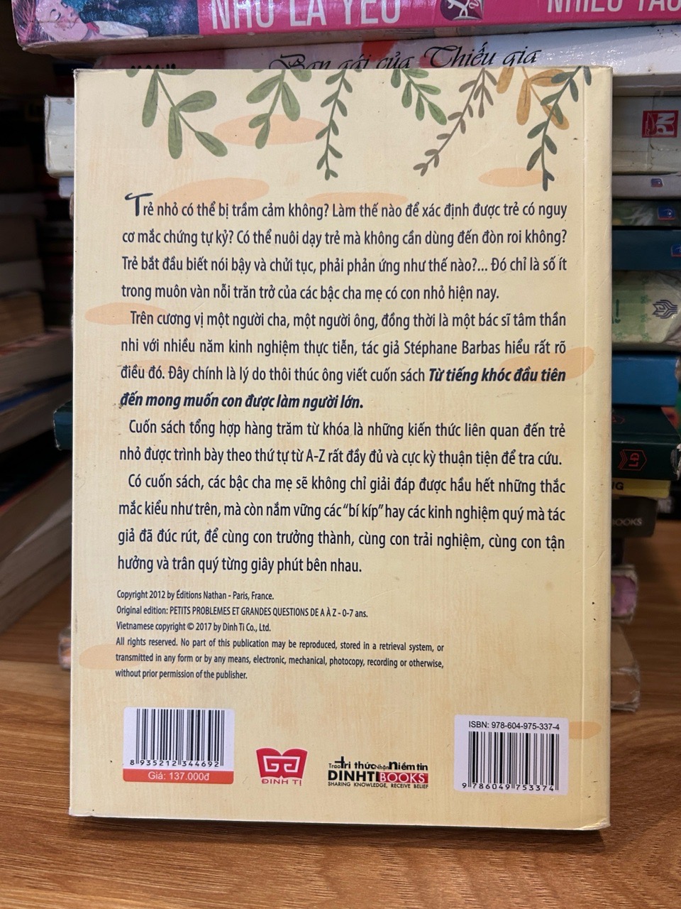 Từ tiếng khóc đầu tiên đến mong muốn con được làm người lớn -BS .Stéphane Barbas – Sách cũ còn tốt, giá tốt tại Mecobooks. Shop chuyên sách cũ chính hãng, giao hàng toàn quốc.
