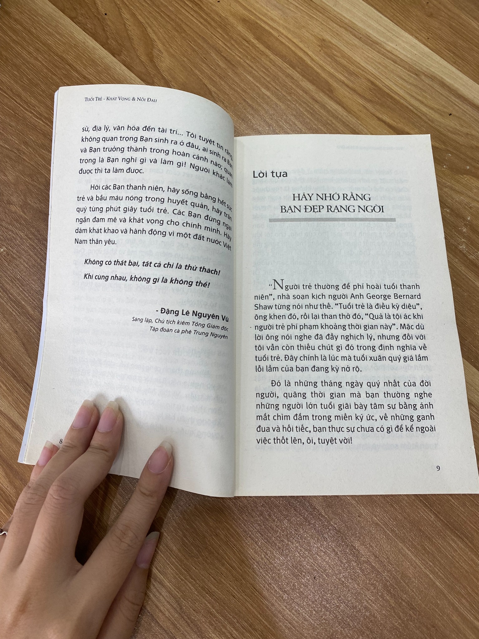 “Tuổi trẻ khát vọng và nỗi đau” là một cuốn sách dành cho tất cả những ai đang đi qua hoặc đã từng đi qua những năm tháng thanh xuân sôi nổi. Dù bạn đang chênh vênh trên con đường tìm kiếm chính mình, hay đang hoài niệm về một thời đã qua, bạn đều sẽ tìm thấy một phần câu chuyện của mình trong đó. Tác phẩm không đưa ra những công thức thành công sáo rỗng, mà thay vào đó, nó là một người bạn đồng hành, lắng nghe, chia sẻ và vỗ về. Nó nhắc nhở chúng ta rằng, được sống hết mình với cả khát vọng và nỗi đau mới chính là đặc ân lớn nhất của tuổi trẻ.