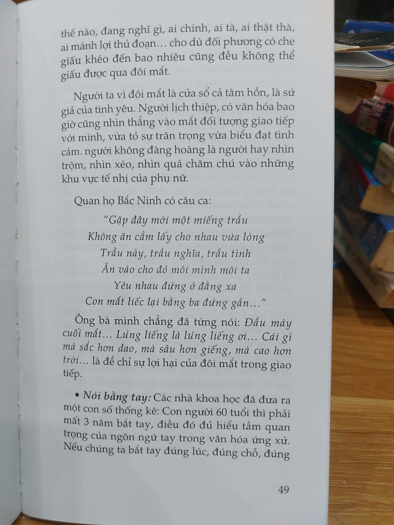 Điểm độc đáo của tác phẩm nằm ở sự kết nối chặt chẽ giữa văn hóa ứng xử và bí quyết ‘trẻ lâu, sống lâu’. Các tác giả đã chỉ ra rằng, một tâm trí an yên, không vướng bận bởi những xung đột không đáng có, một tinh thần lạc quan được nuôi dưỡng từ những mối quan hệ tốt đẹp chính là liều thuốc bổ tự nhiên quý giá nhất. Khi chúng ta biết cách cho đi yêu thương, nhận lại sự tôn trọng và xây dựng được một mạng lưới xã hội tích cực, cơ thể sẽ giảm thiểu căng thẳng (stress), hệ miễn dịch được tăng cường và quá trình lão hóa cũng chậm lại. Sống chan hòa, vị tha và tích cực không chỉ làm đẹp cho tâm hồn mà còn là phương pháp dưỡng sinh hiệu quả, giúp chúng ta duy trì được sự trẻ trung từ bên trong.